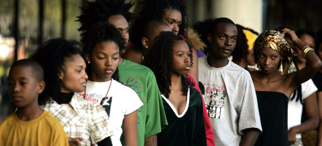 crianças e adolescentes que, em 1976, na cidade de Soweto, África do Sul,